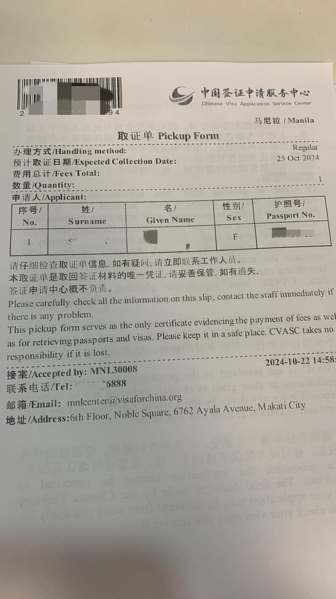 办理中国签证带我老婆回中国,他们会拉个群和我还要我老婆一起沟通,中国人也有菲律宾人也有在里面,告诉我们需要哪些材料、什么样的提供照片就可以了、什么样的需要提供原件、有些材料他们可以帮我们弄,也不出本来出面去领馆啥的,资料备好很快就拿到取证单了