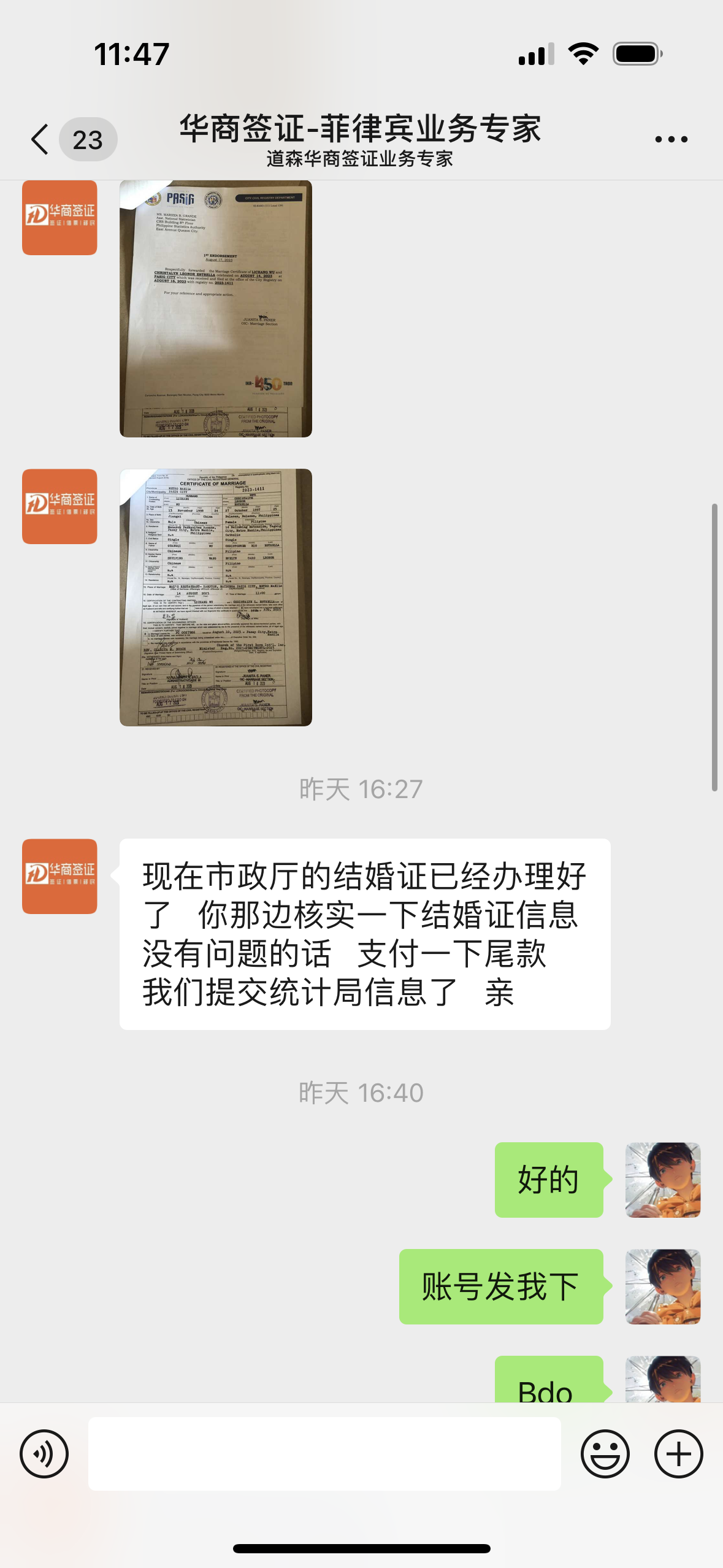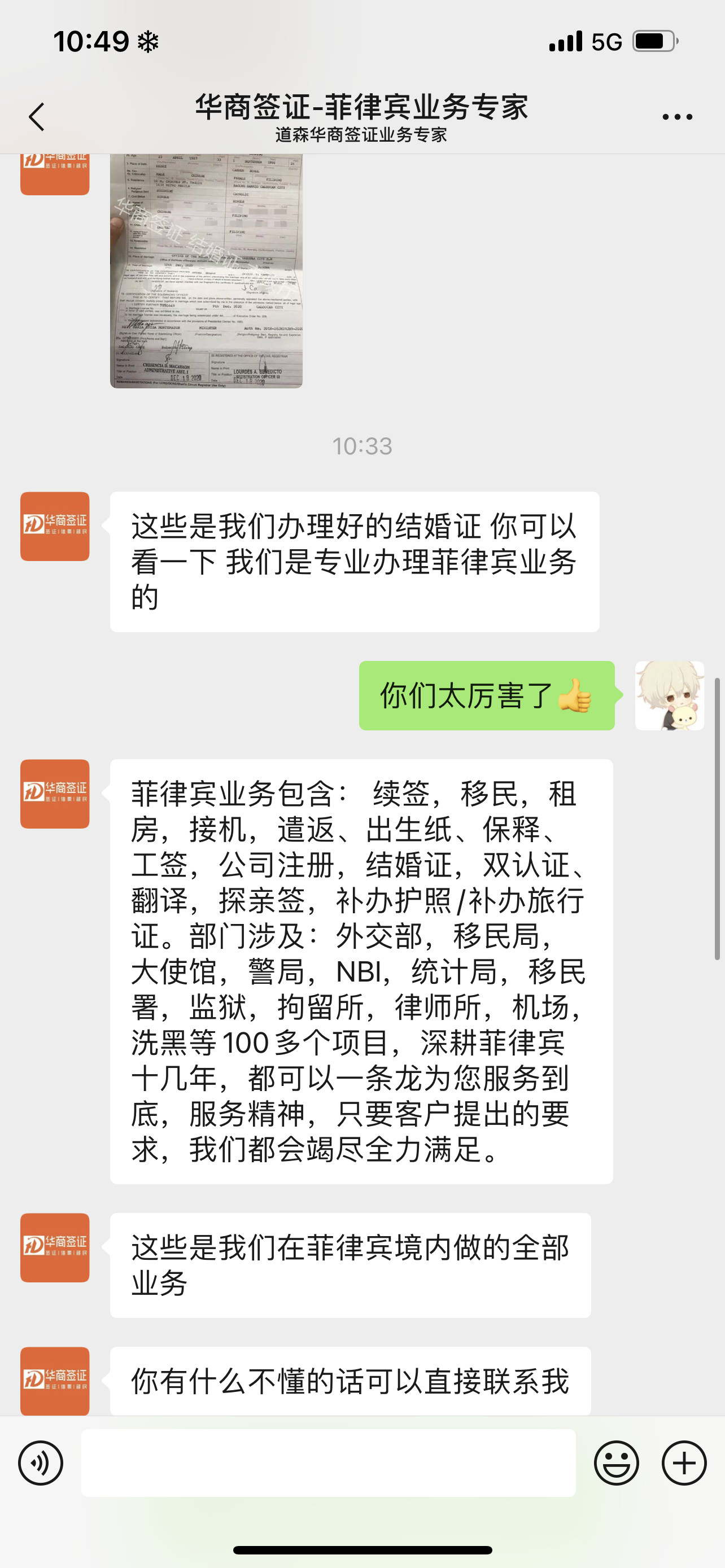 服务很棒,菲律宾签证终于有规范化的公司也是挺好,每次都是那种个人工作室搞的话很没有安全感。我的结婚照 ?认证也搞好了 谢谢 希望你们不忘初心 继续加油