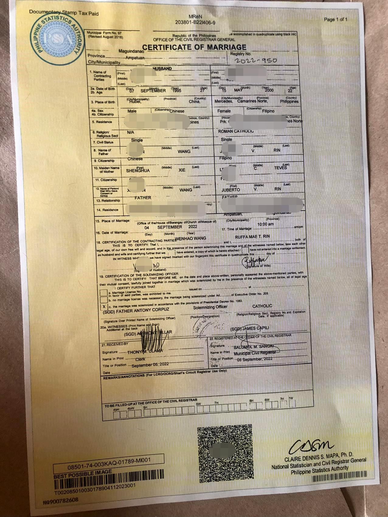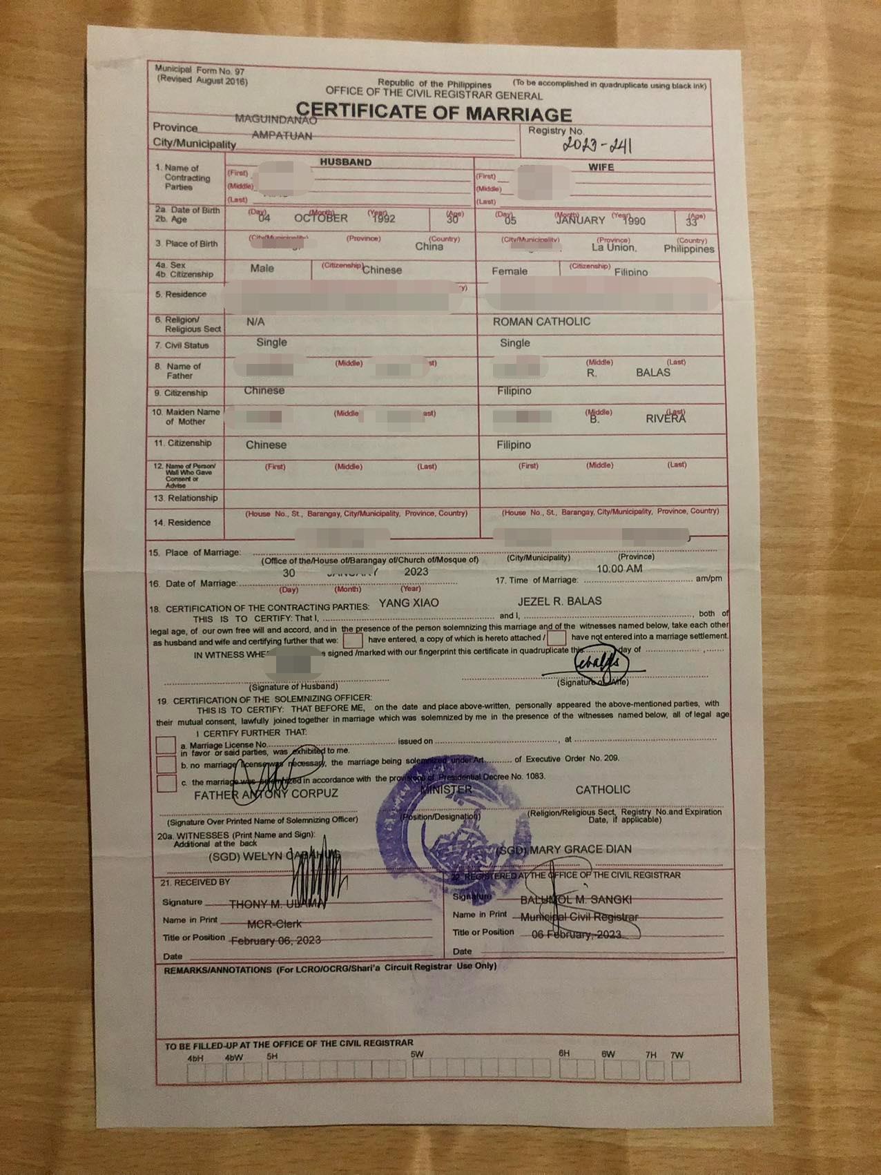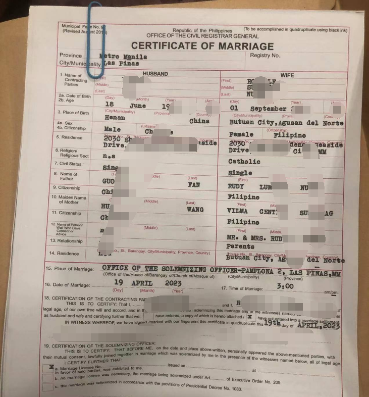 在这边已经停留两年时间了,想带菲律宾太太回国,由于旅游签对资料的信息比较严格,在网上找到华商签证以后,结婚证一天时间给我做好,这效率杠杠的