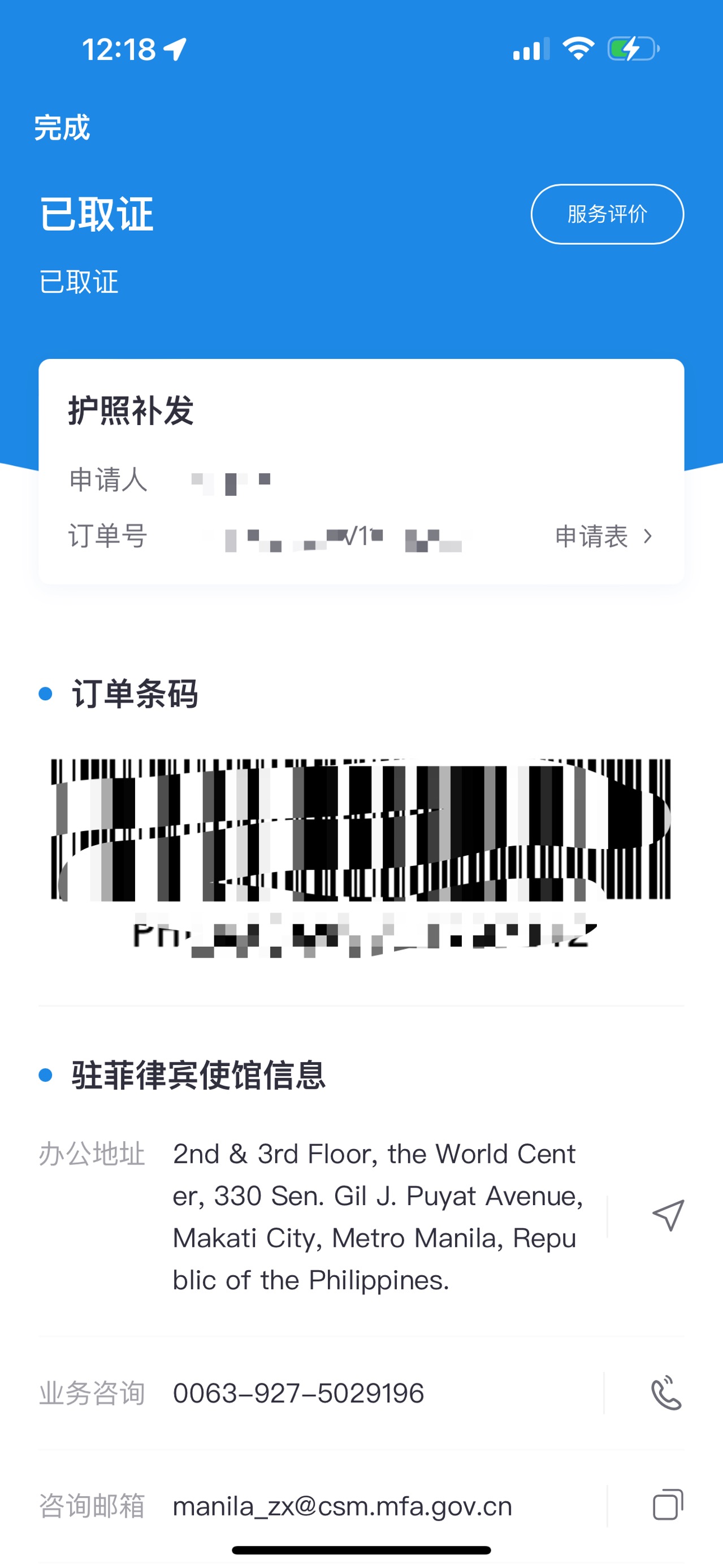在菲律宾已经l联系很多中介都是不能补办护照,从网上联系到华商签证,经过再三的考虑决定办理,全程手续都是由他们操作的,如今等待护照中,华商签证靠谱!!