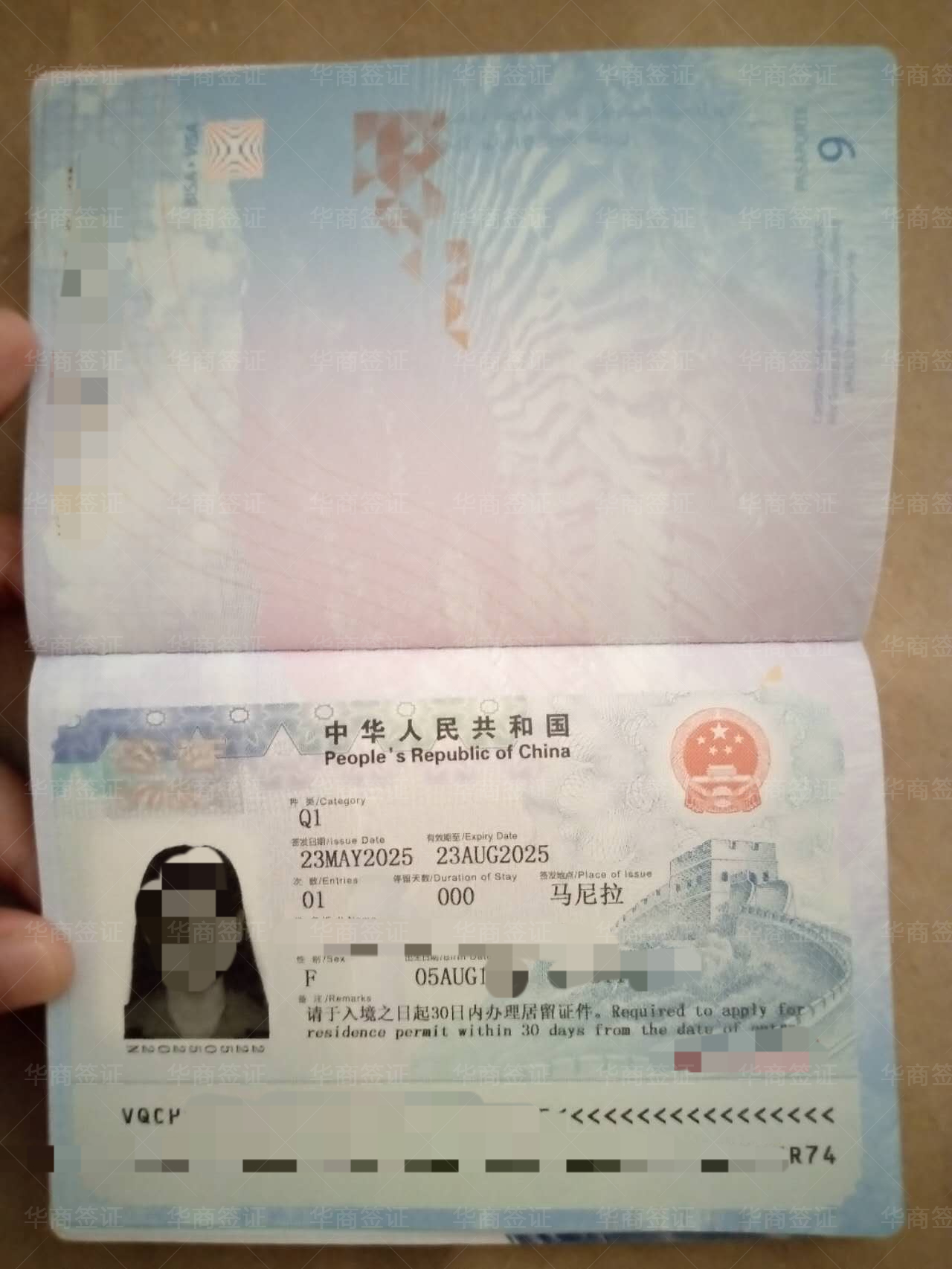 签证到手了,给我女朋友办的入华旅游签,包签的果然放心,资料也准备的好,完全不用担心,很赞?。。?!