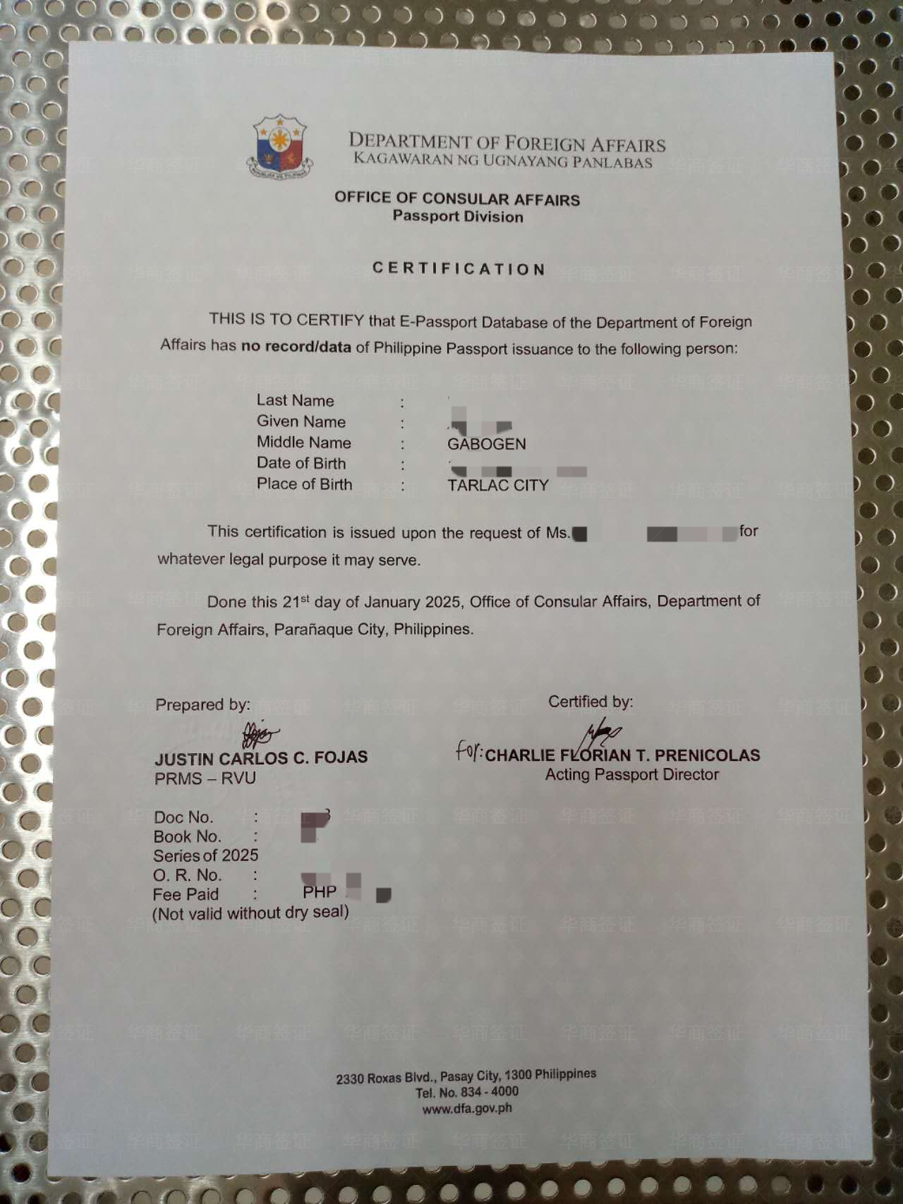 给我孩子办无菲籍证明,在咱也不会英文我老婆也不知道怎么弄,只能找华商办了,要的资料也少,办的也快也不用本人去,一周这样就出了