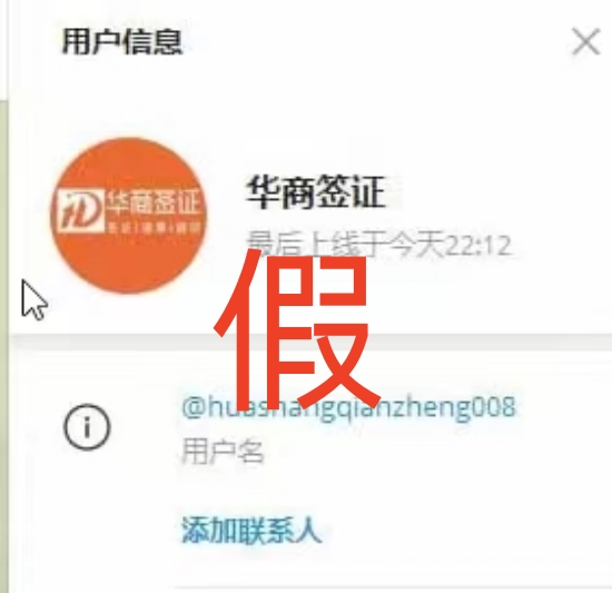 2、华商签证的唯一“Telegram”:09561666616,下面图片中所示为冒充,请大家注意甄别。